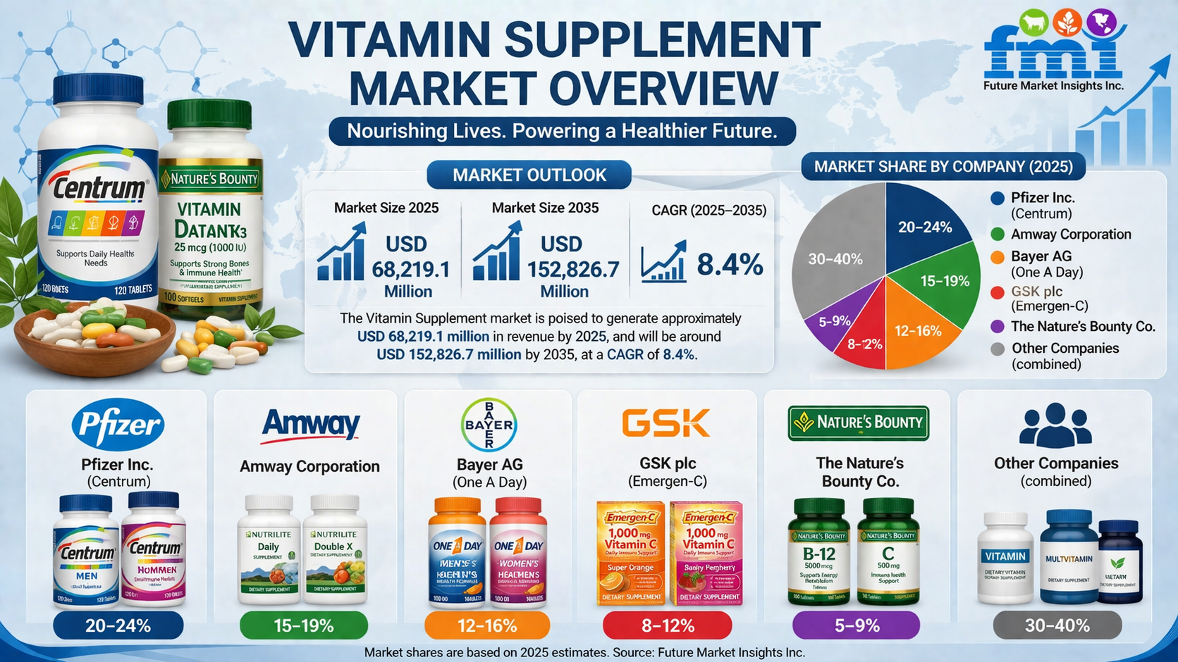 - Key Players: Pfizer Inc. (Centrum), Amway Corporation, Bayer AG, GSK plc, Nature’s Bounty