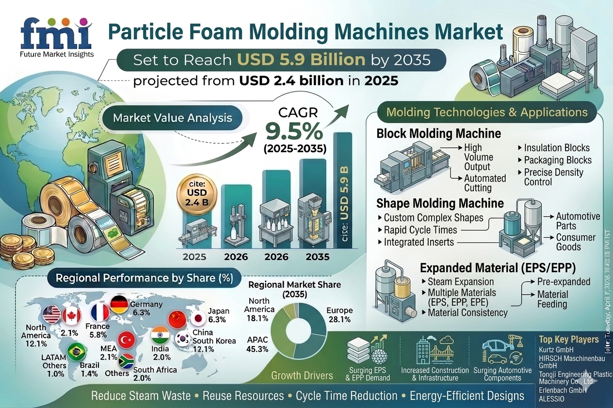 As packaging, automotive, construction, and electronics sectors scale production, particle foam molding technology is evolving from conventional steam chest and block molding systems toward vacuum-assisted, multi-density, and fully automated lines that deliver higher precision and reduced material waste.