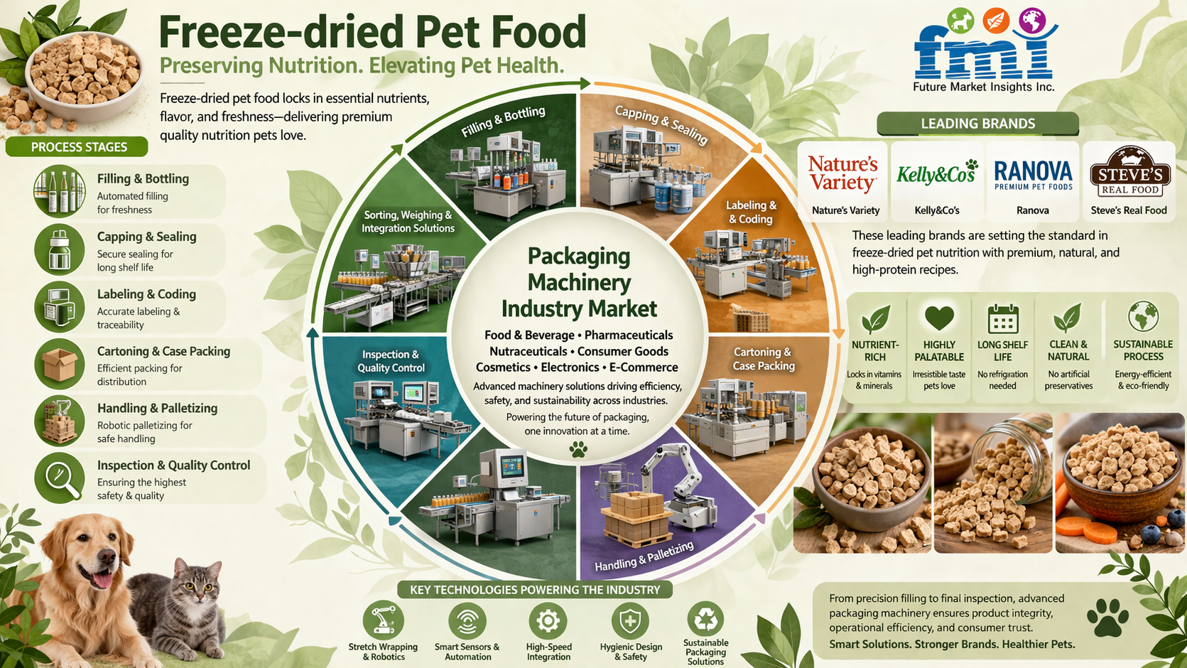 - Nature’s Variety & Primal Pet Foods – Focus on clean-label, raw-inspired nutrition