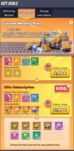 Nhiệm Vụ Năng Lượng Loot chạy song song với Ưu đãi Nóng, cho phép người chơi kiếm huy hiệu năng lượng hàng tuần thông qua các giao dịch mua đủ điều kiện để nhận thêm phần thưởng.