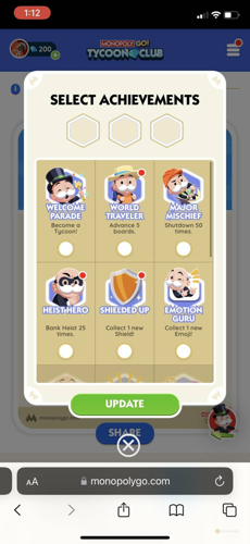 Scopely đang dần giới thiệu 14 thành tựu dựa trên tiến trình trong Monopoly Go.