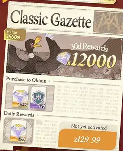Acquiring diamonds can be straightforward; for instance, spending just $5 grants you immediately 3,000 diamonds. Additionally, this purchase extends your gazette's duration, providing ongoing benefits.