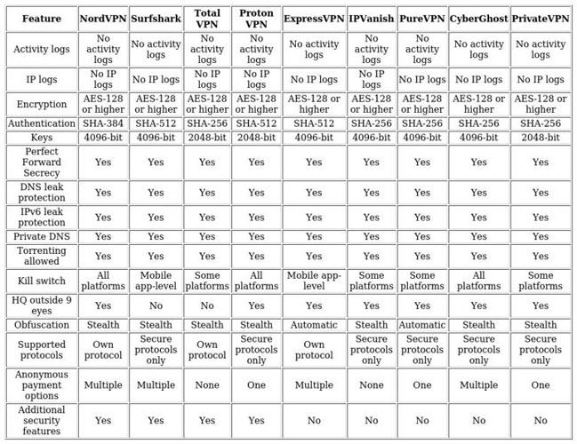 scrutinized encryption standards and no-logging policies