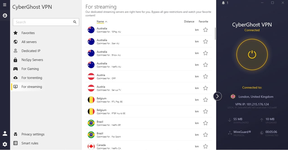 Behind CyberGhost's intuitive interface lies a comprehensive security infrastructure. The service implements military-grade encryption alongside essential features like an automatic kill switch and tracker-blocking capabilities. Privacy-conscious users will appreciate the verified no-logs policy and confirmed absence of IPv6, DNS, or WebRTC leaks during expert testing.