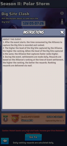 Once the event kicks off, the duration taken by each alliance to seize the dig sites is tracked and compared.