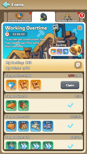 During the Working Overtime event, participants accumulate points by using speedup items.